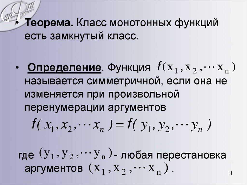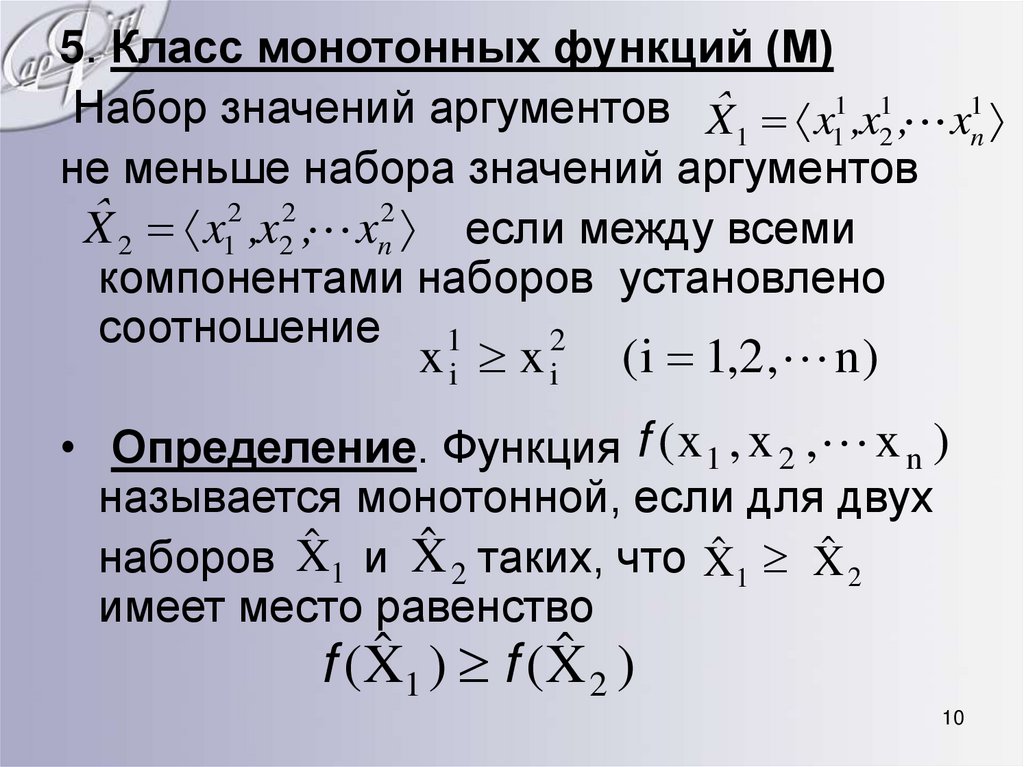 5. Класс монотонных функций (М)Набор значений аргументов X̂1 x11 ,x12 , x1n