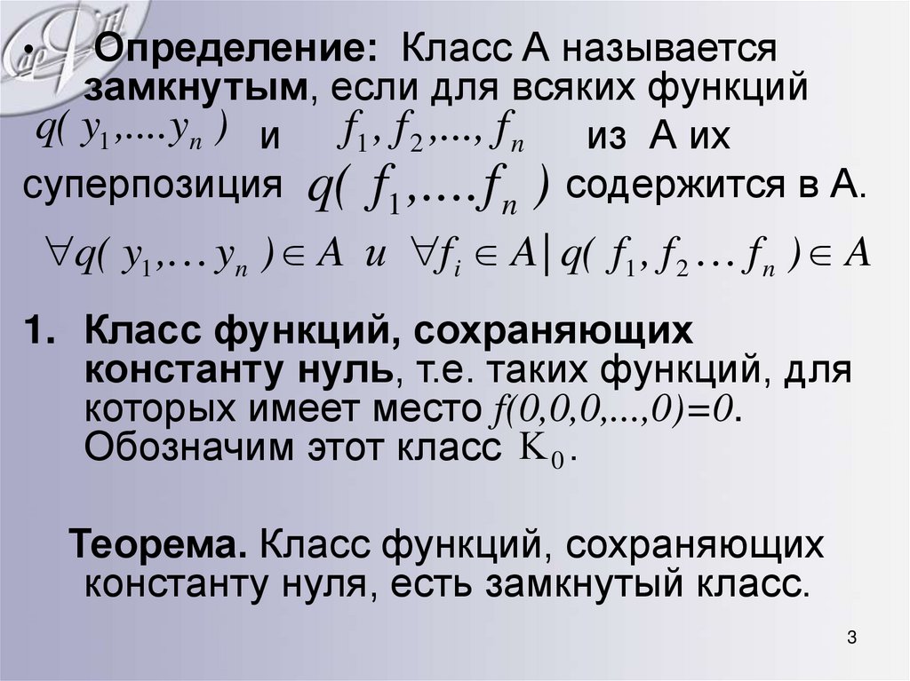 Определение: Класс А называетсязамкнутым, если для всяких функций