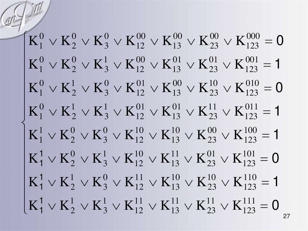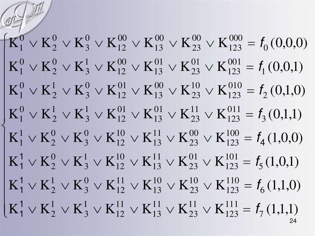 K 1 K 2 K 3 K 12 K13 K 23 K 123 1