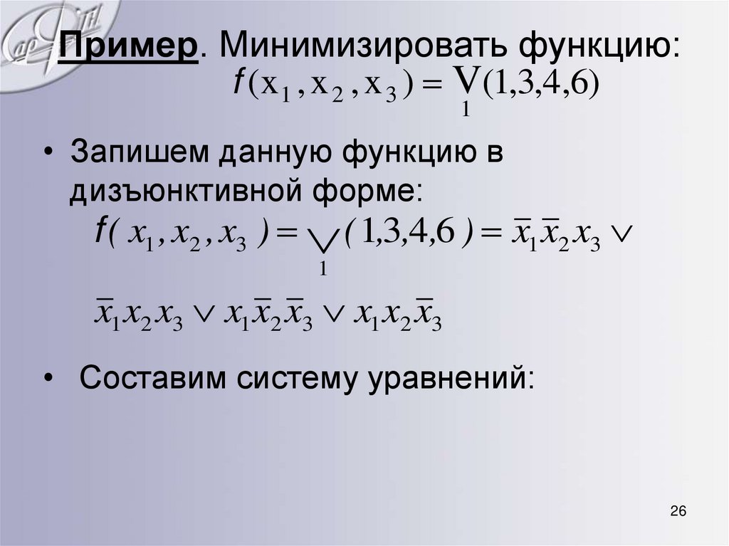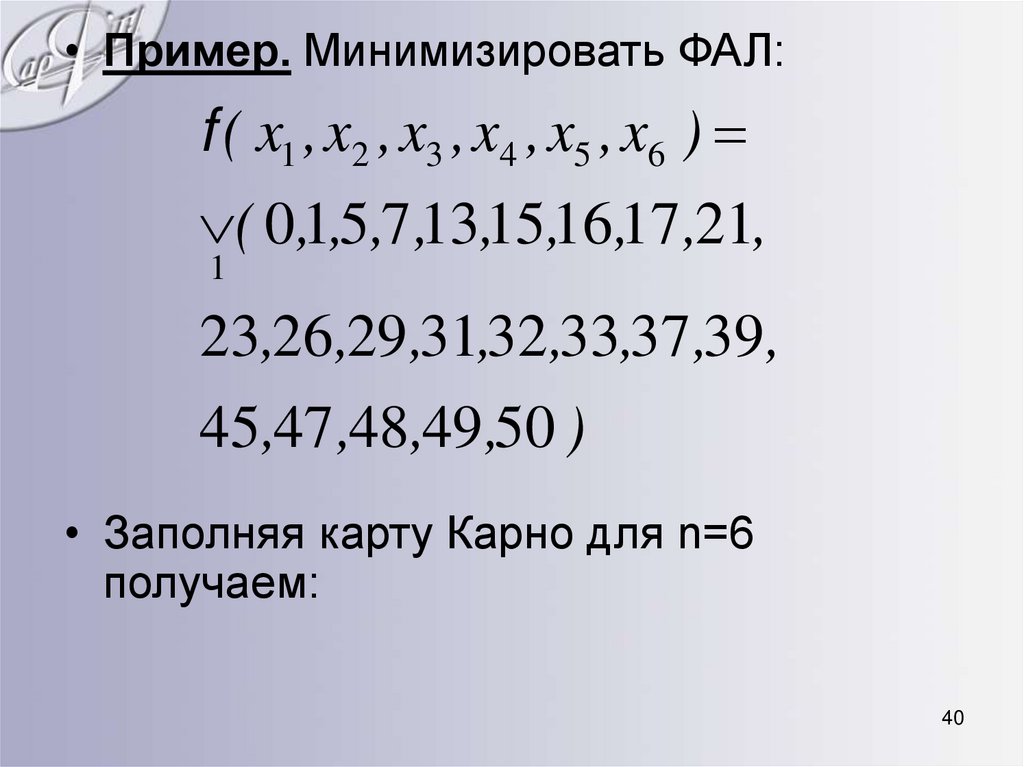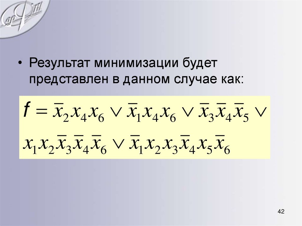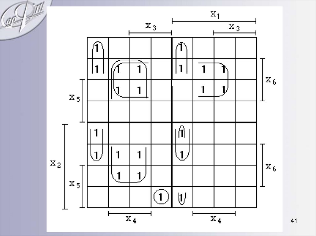 • Пример. Минимизировать ФАЛ:f ( x1 , x2 , x3 , x4 , x5 , x6 )