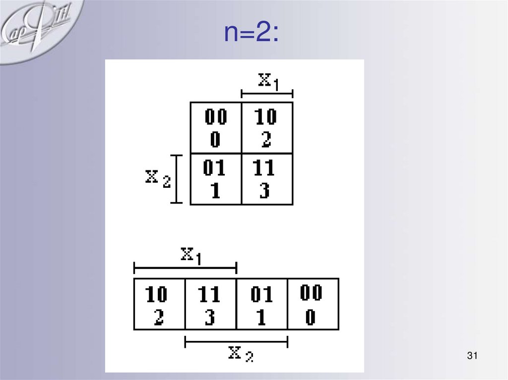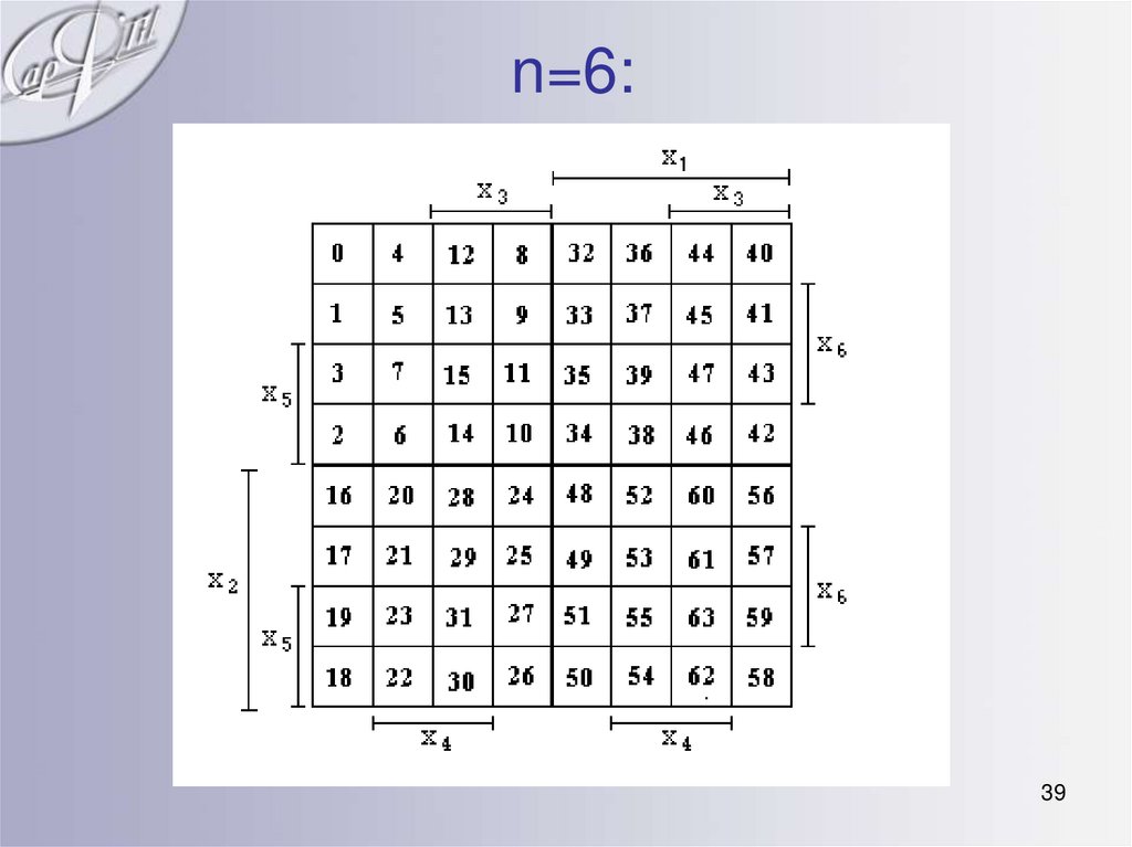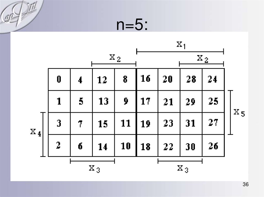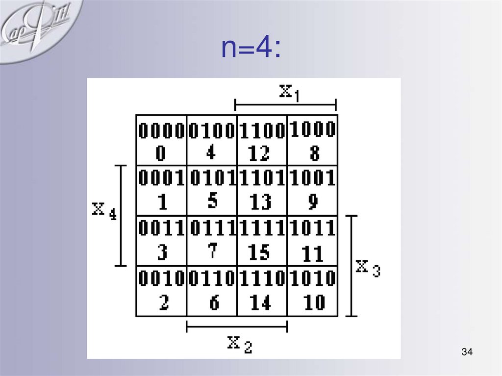 • Карта Карно заполняется также, кактаблица истинности: В каждой клетке,