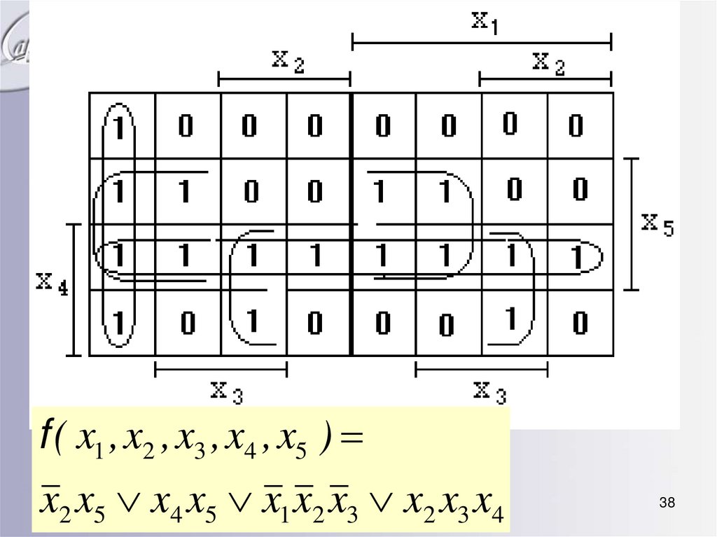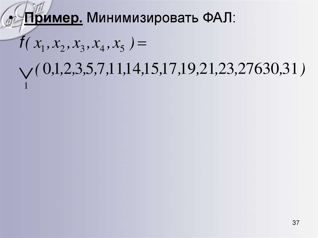 • Пример. Минимизировать ФАЛ:f ( x1 , x2 , x3 , x4 , x5 )