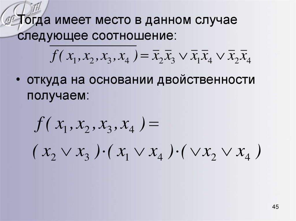 f ( x1 , x2 , x3 , x4 ) x2 x3 x1 x4 x2 x4• откуда на основании двойственности