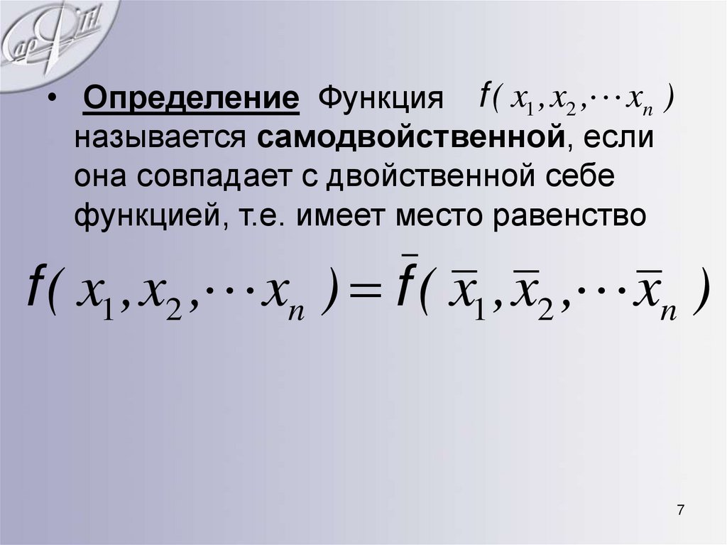 f ( x1 , x2 , xn ) называется самодвойственной,
