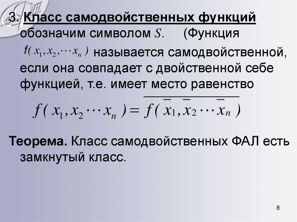 3. Класс самодвойственных функцийобозначим символом S. (Функция