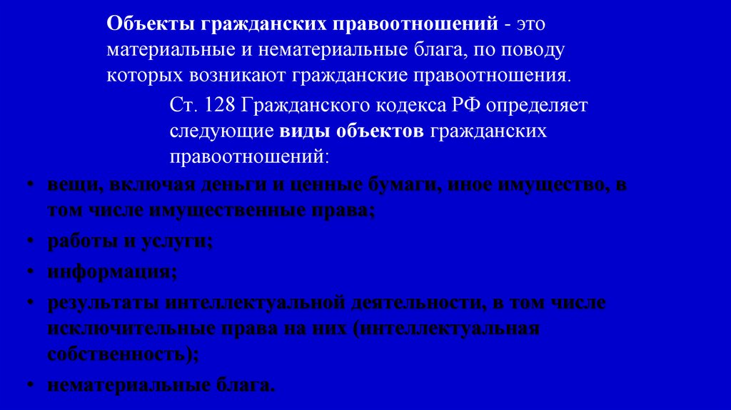 Объекты гражданских правоотношений - этоматериальные и нематериальные блага, по поводу