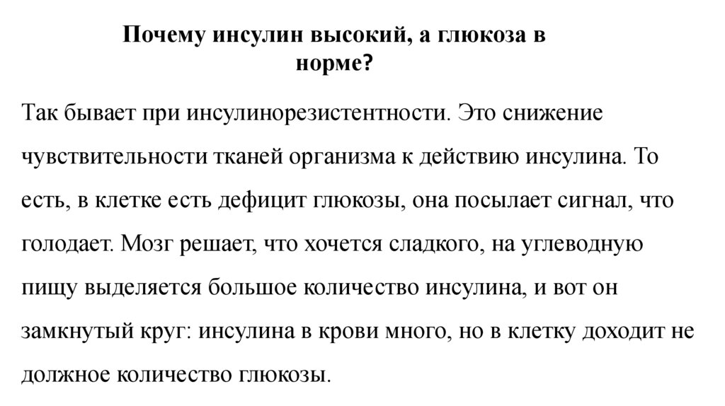 замкнутый круг: инсулина в крови много, но в клетку доходит не