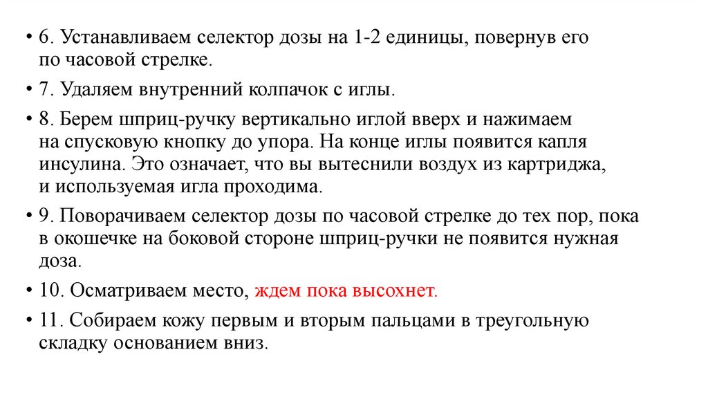 • 8. Берем шприц-ручку вертикально иглой вверх и нажимаем