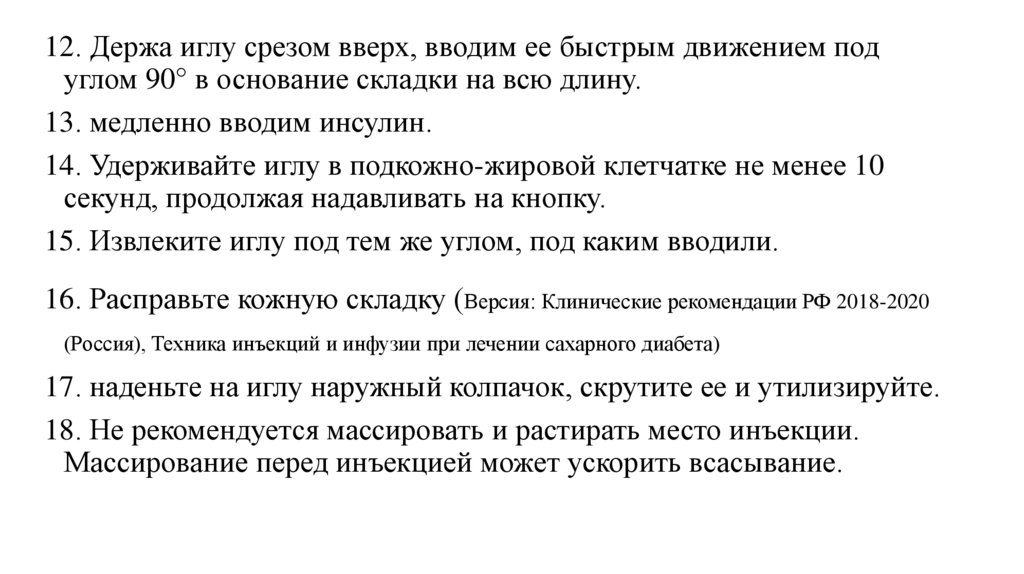 16. Расправьте кожную складку (Версия: Клинические рекомендации РФ 2018-2020