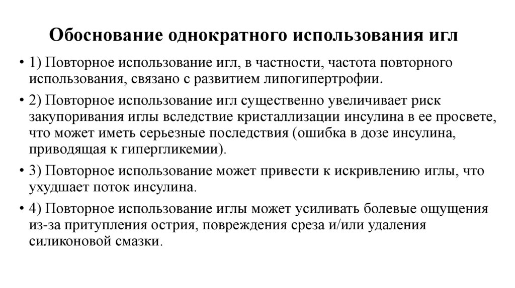 • 4) Повторное использование иглы может усиливать болевые ощущения