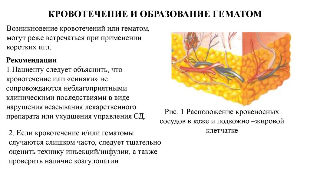 КРОВОТЕЧЕНИЕ И ОБРАЗОВАНИЕ ГЕМАТОМВозникновение кровотечений или гематом,