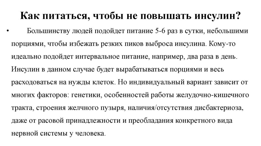 Как питаться, чтобы не повышать инсулин?Большинству людей подойдет питание 5-6 раз в сутки, небольшими