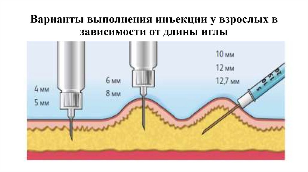 Варианты выполнения инъекции у взрослых взависимости от длины иглы