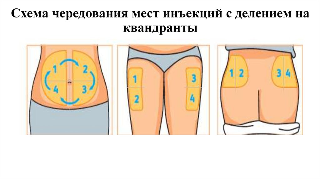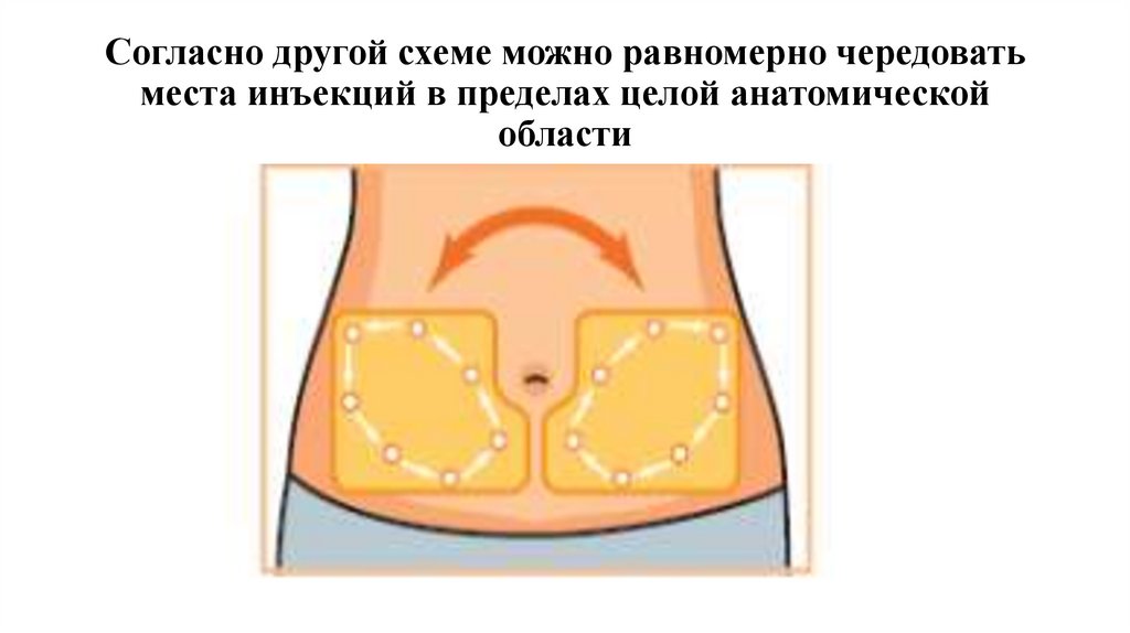 Согласно другой схеме можно равномерно чередоватьместа инъекций в пределах целой анатомической