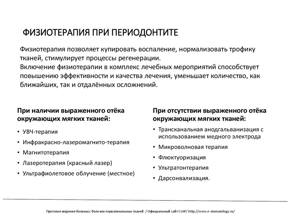 • Протокол ведения больных: болезни периапикальных тканей. / Официальный сайт СтАР/