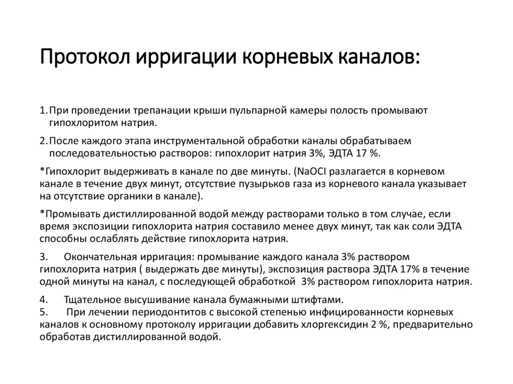 • Ирригация системы корневых каналов. Протокол ирригации. [Электронный
