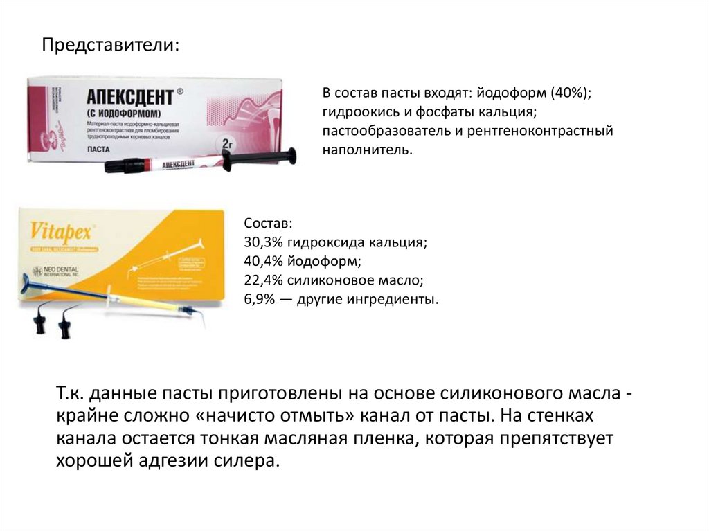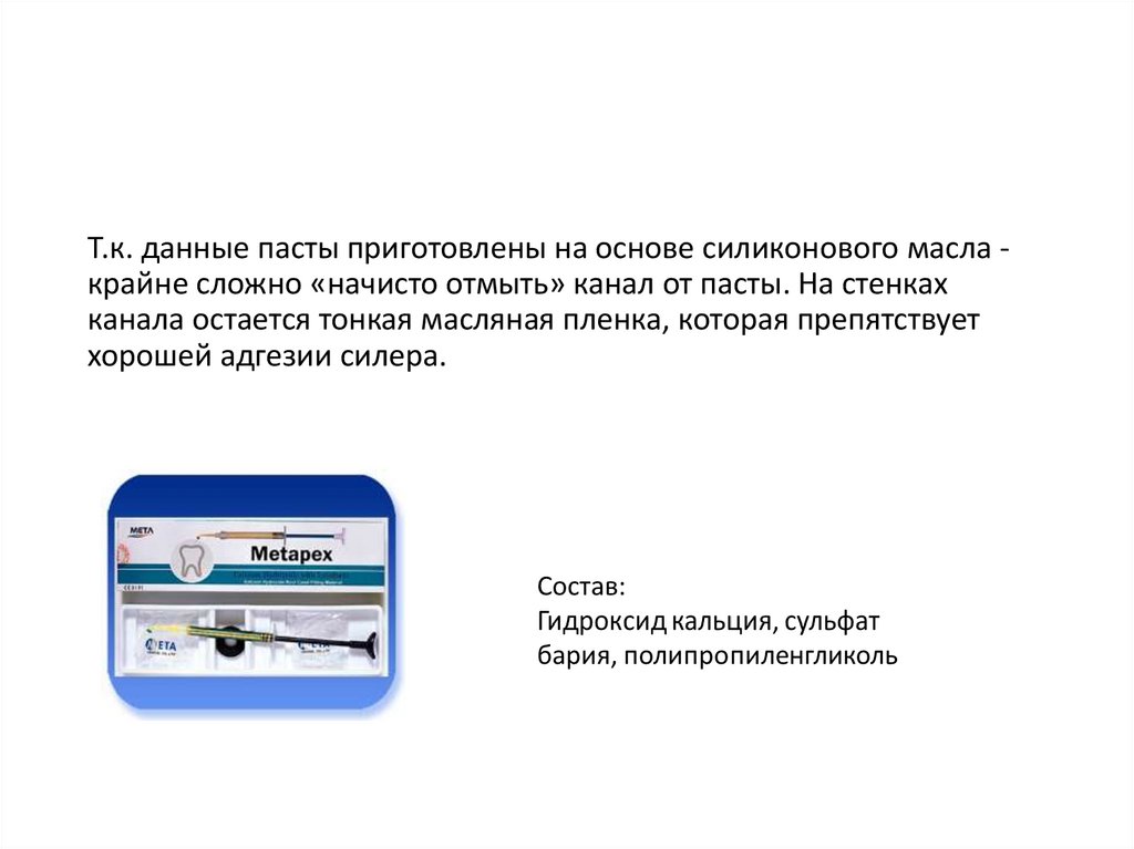 Т.к. данные пасты приготовлены на основе силиконового масла крайне сложно «начисто отмыть» канал от пасты. На стенкахканала остается тонкая масляная пленка, которая препятствует