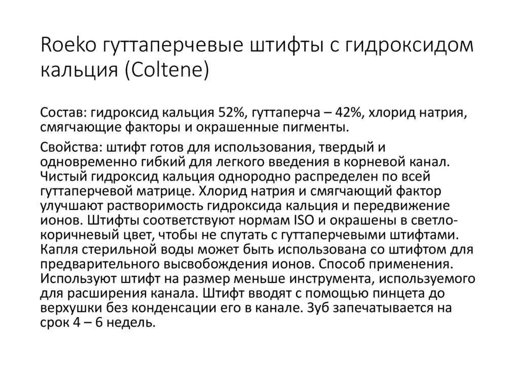 Roeko гуттаперчевые штифты с гидроксидомкальция (Coltene)