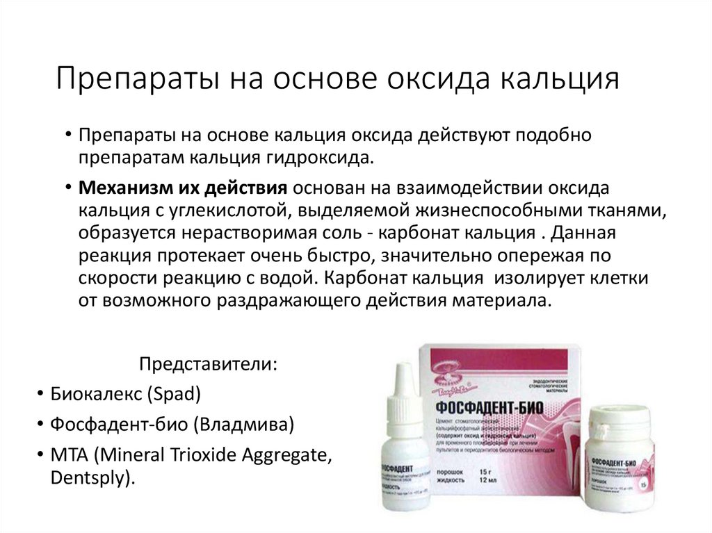 Препараты на основе оксида кальция• Препараты на основе кальция оксида действуют подобно