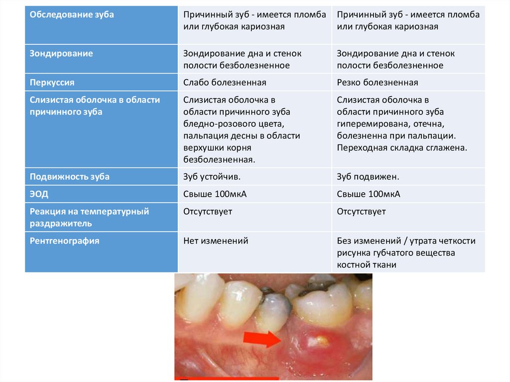 Обследование зубаПричинный зуб - имеется пломба