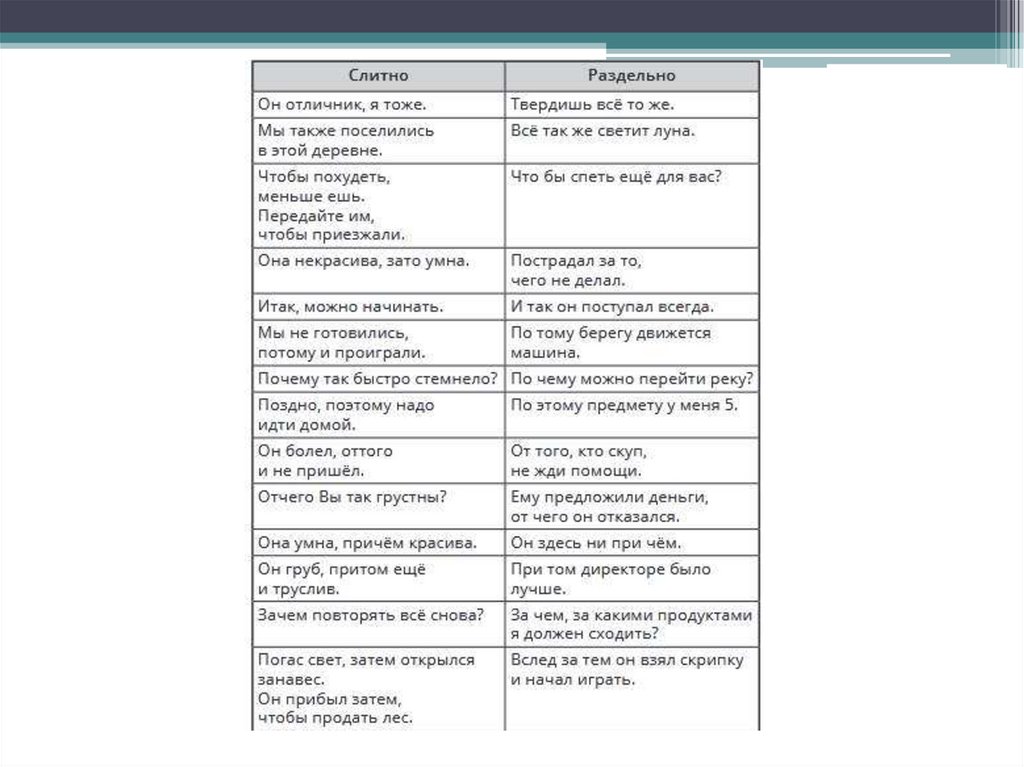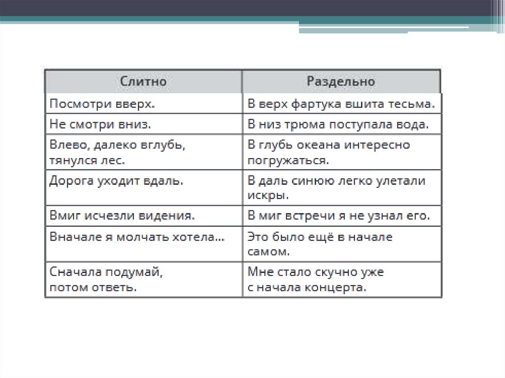 Слитное и раздельноенаписание одинаково звучащих