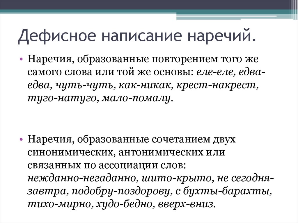 Дефисное написание наречий.• Наречия, образованные повторением того же