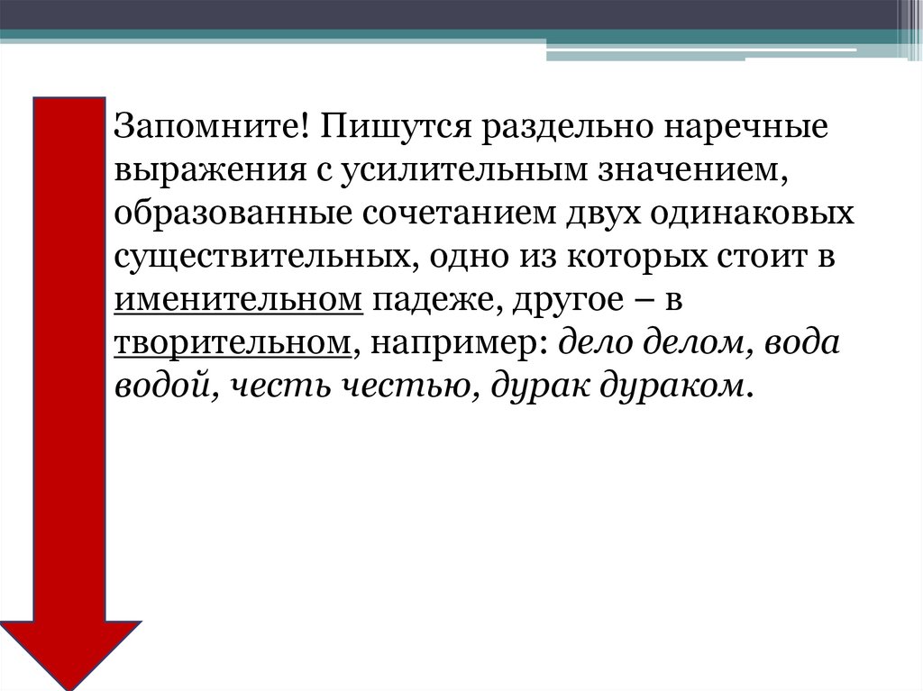 • Запомните! Пишутся раздельно наречныевыражения с усилительным значением,