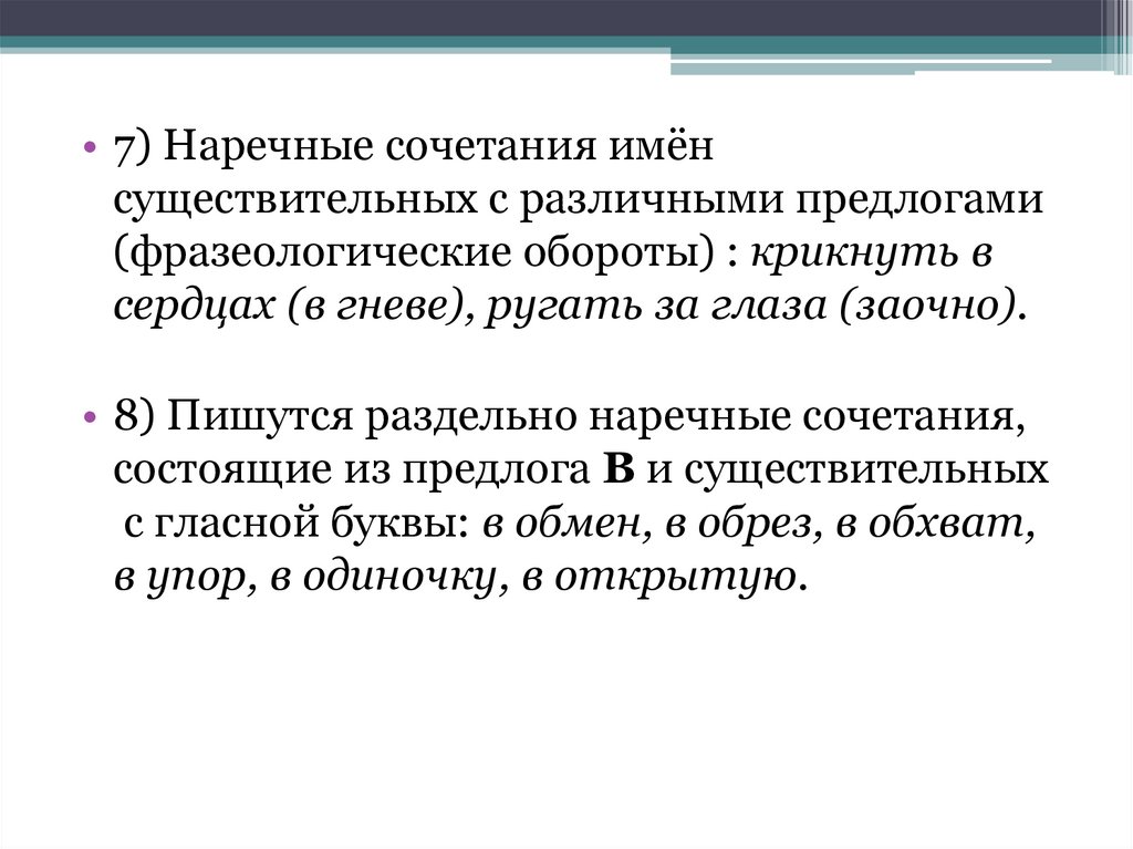 • 7) Наречные сочетания имёнсуществительных с различными предлогами