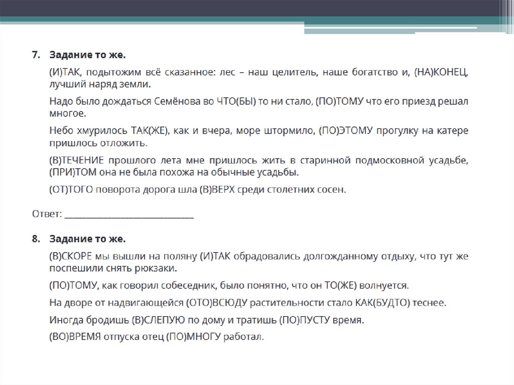 справа, подолгу, попусту, неподалеку.