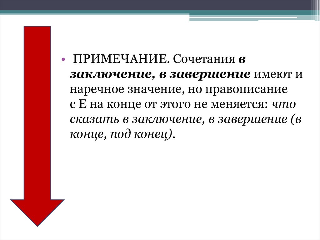 • ПРИМЕЧАНИЕ. Сочетания взаключение, в завершение имеют и