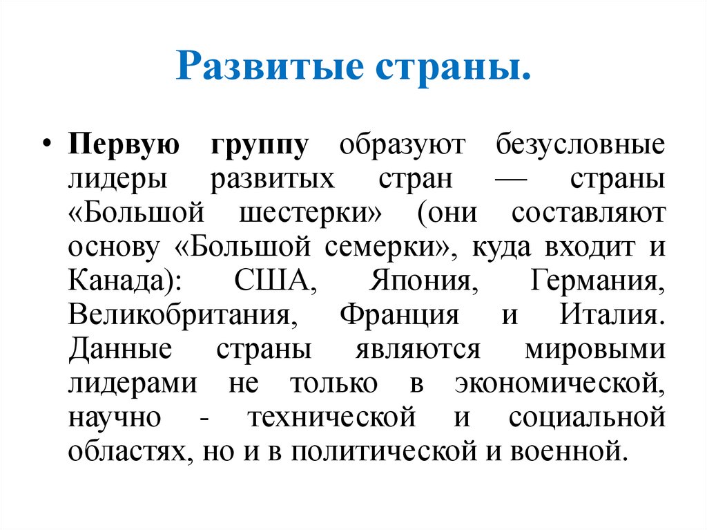 • Седьмую группу образуют беднейшие страны мира. Всего их