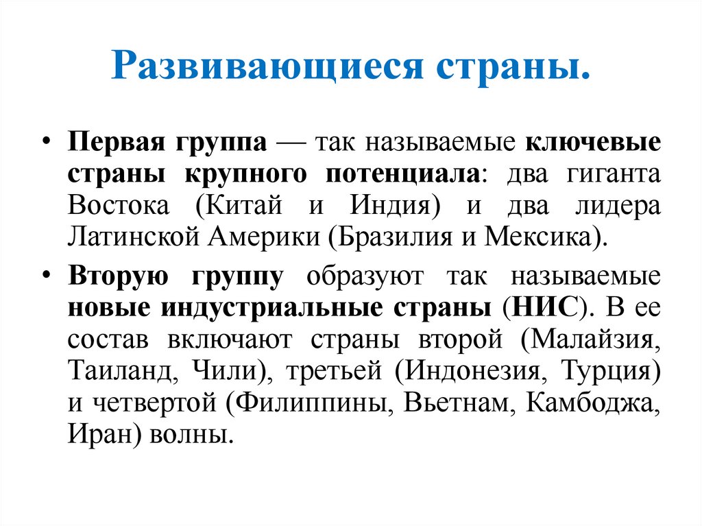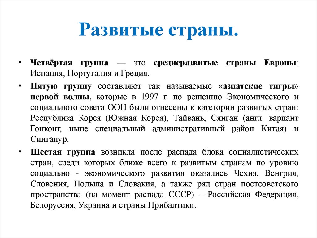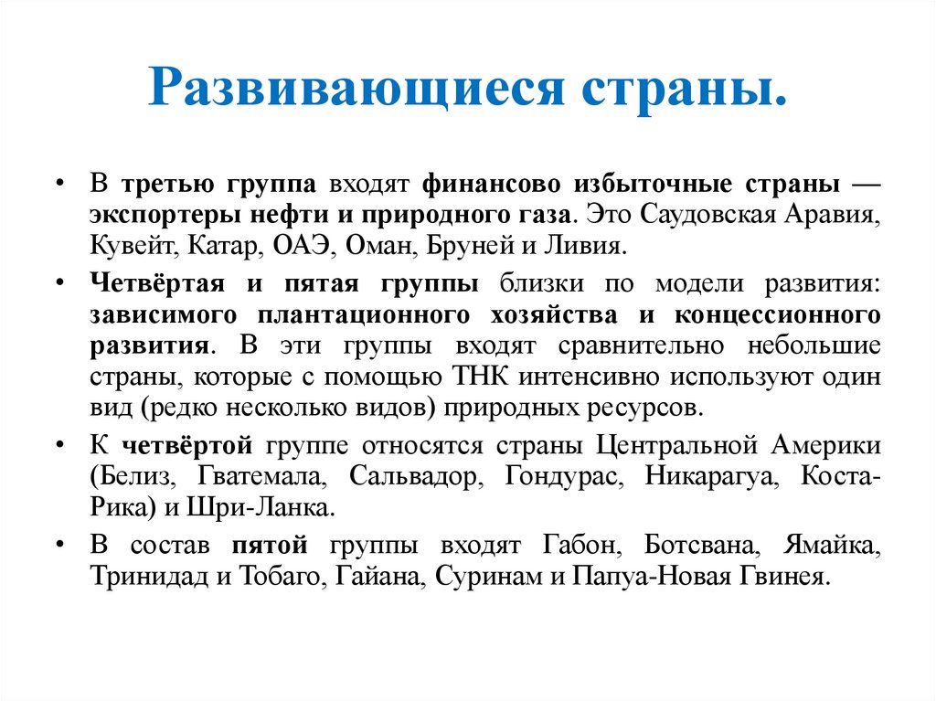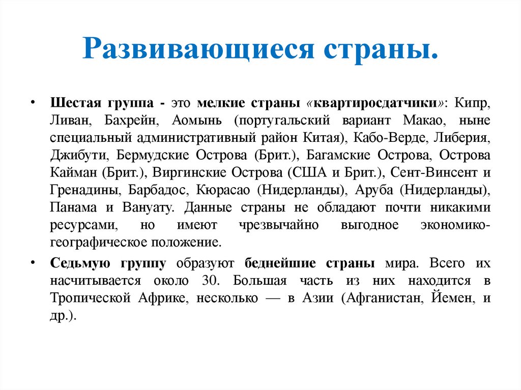 Развивающиеся страны.• Шестая группа - это мелкие страны «квартиросдатчики»: Кипр,
