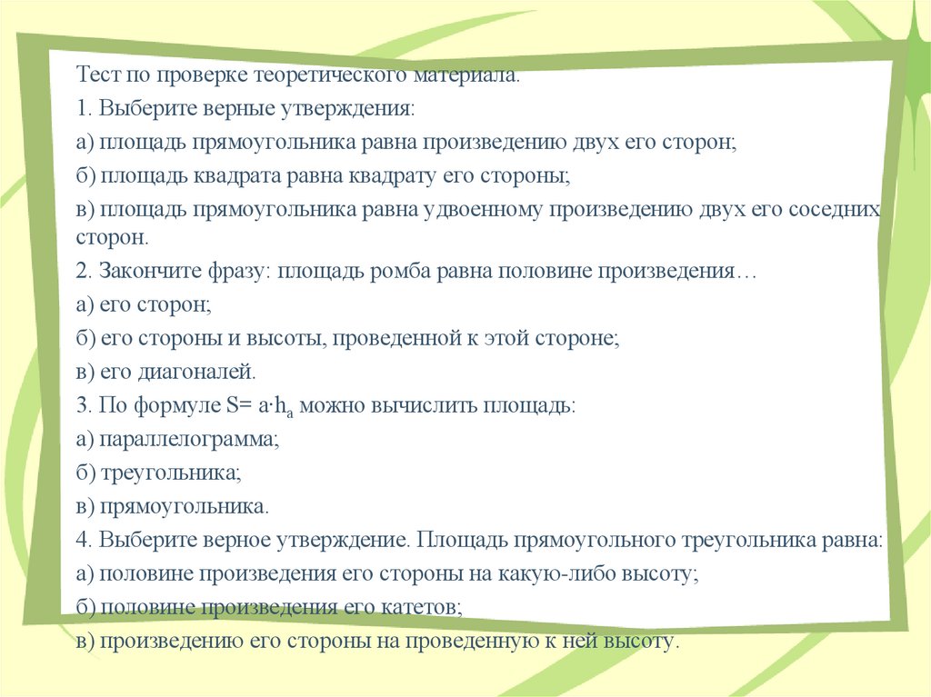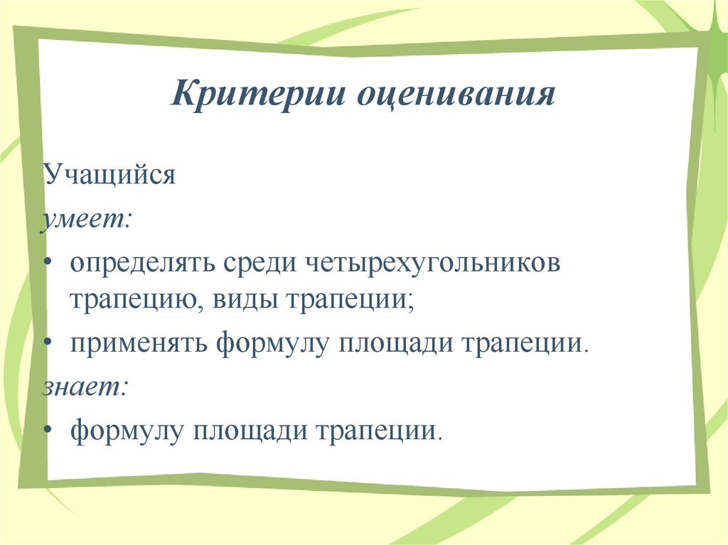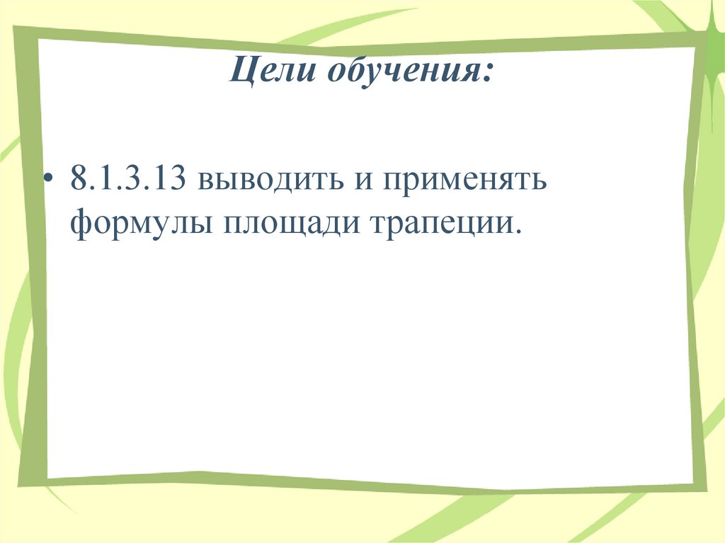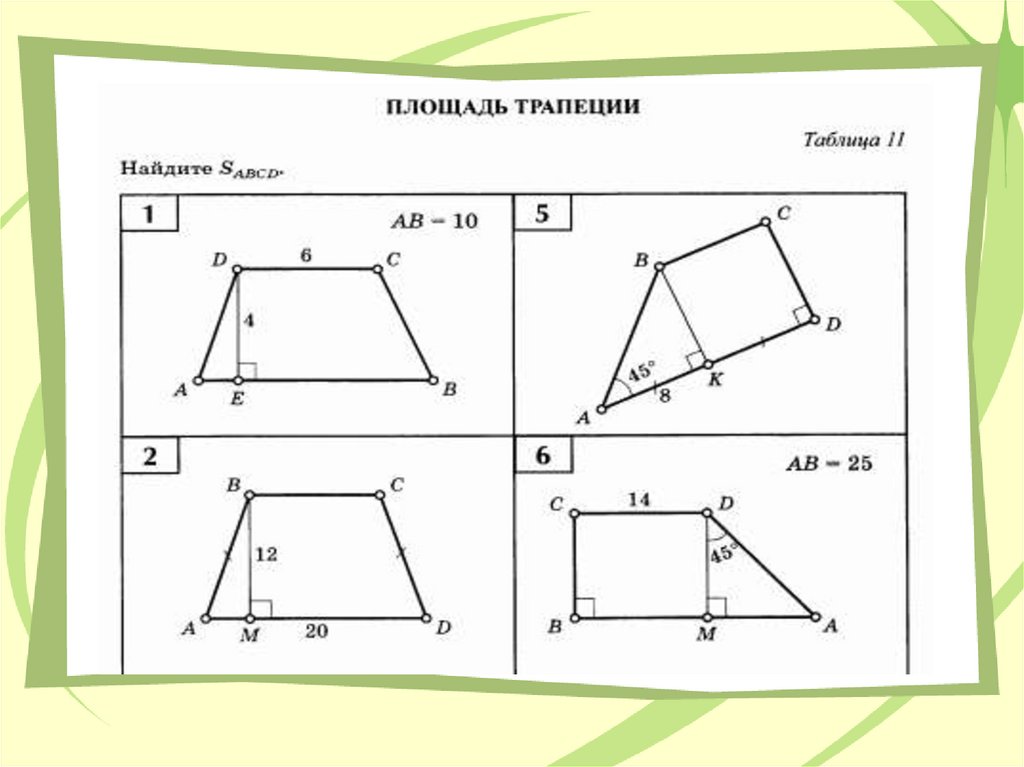 • применять формулу площади трапеции.