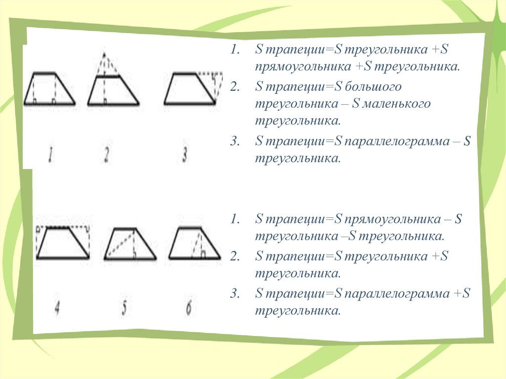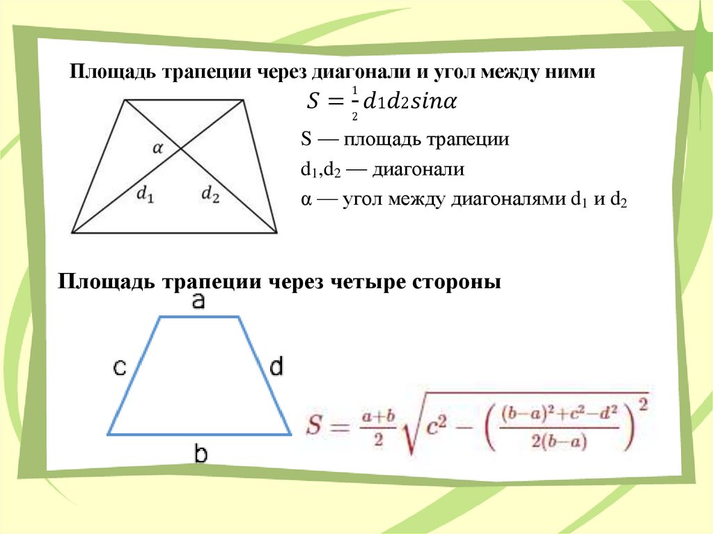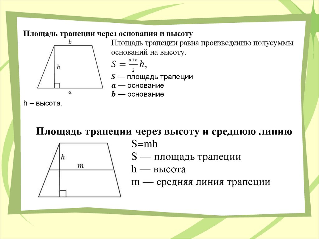 формулы площади трапеции.
