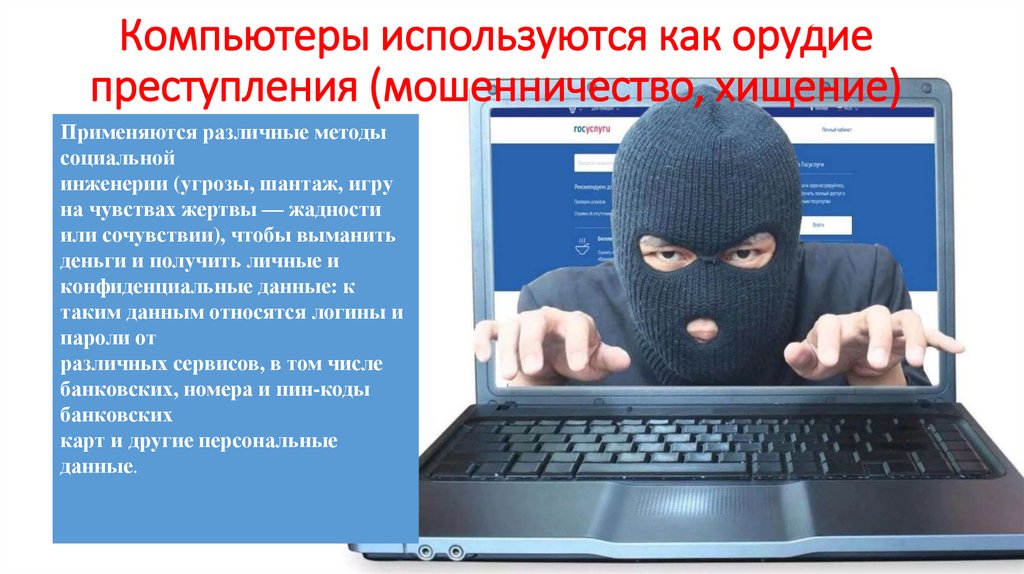 Компьютеры используются как орудиепреступления (мошенничество, хищение)
