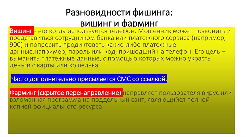Вишинг - это когда используется телефон. Мошенник может позвонить и
