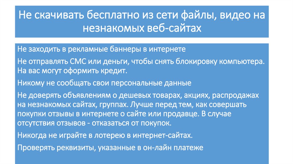 Не скачивать бесплатно из сети файлы, видео нанезнакомых веб-сайтах