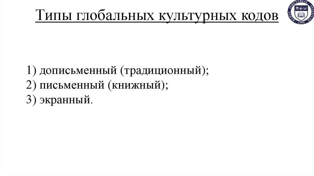 Экранный тип культурыСформировался в начале XX в. Его культурным кодом являются