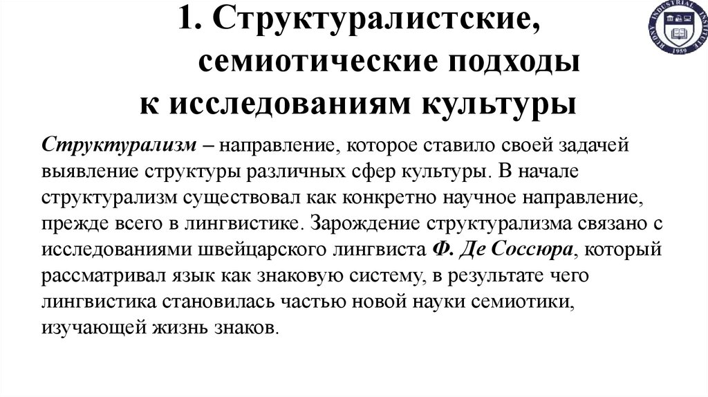 прежде всего в лингвистике. Зарождение структурализма связано с