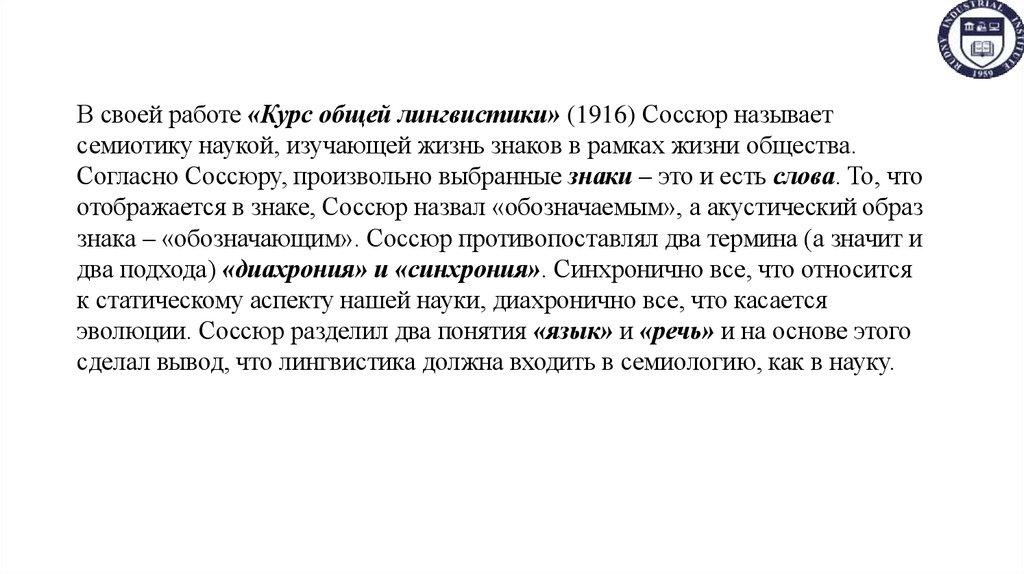 исследованиями швейцарского лингвиста Ф. Де Соссюра, который