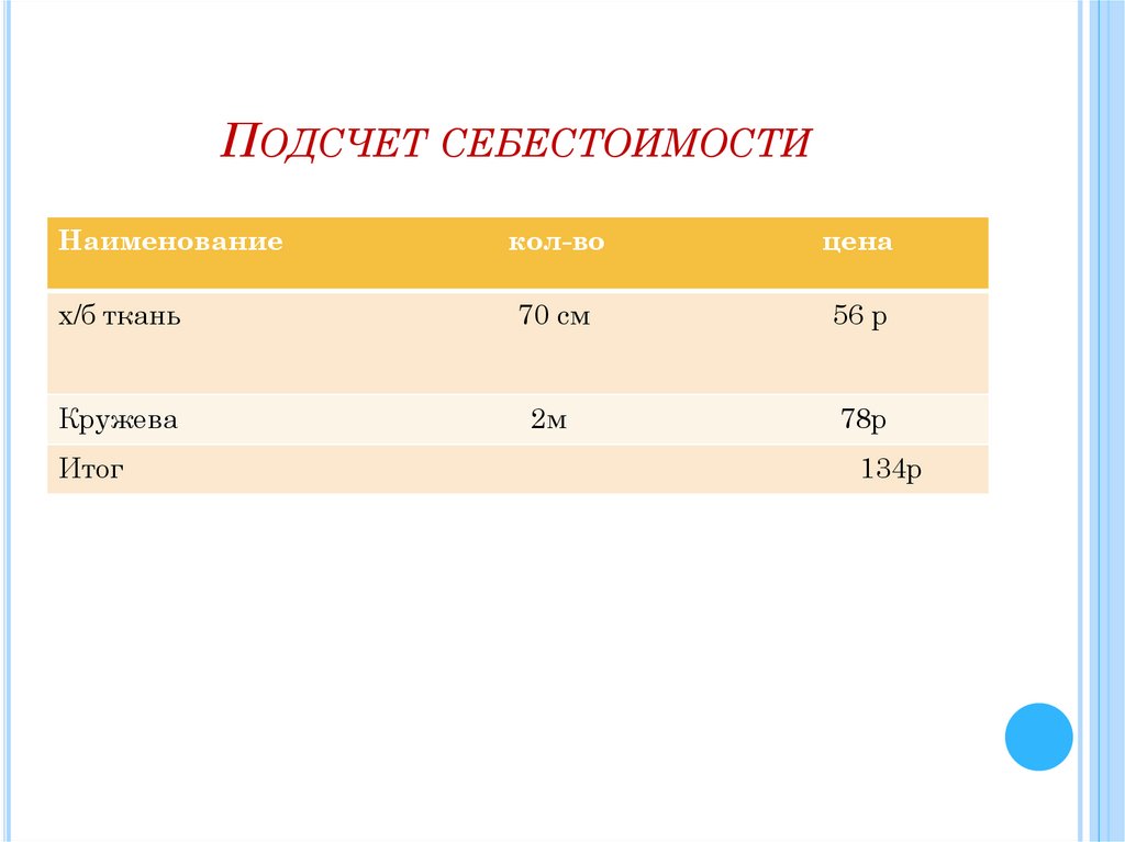 ПОДСЧЕТ СЕБЕСТОИМОСТИНаименование