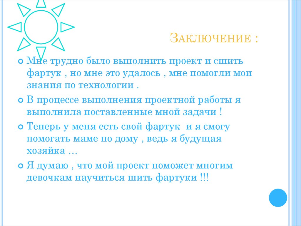 ЗАКЛЮЧЕНИЕ :Мне трудно было выполнить проект и сшить