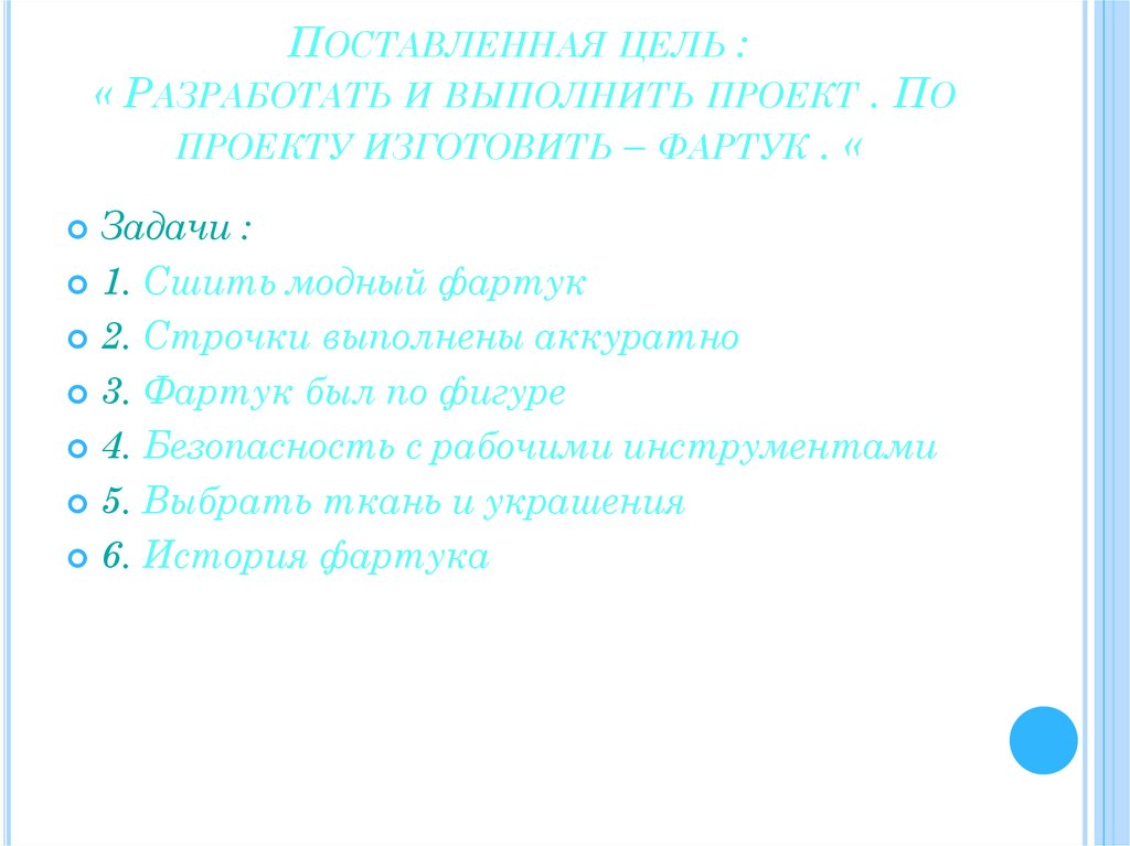 ПРОЕКТУ ИЗГОТОВИТЬ – ФАРТУК . «