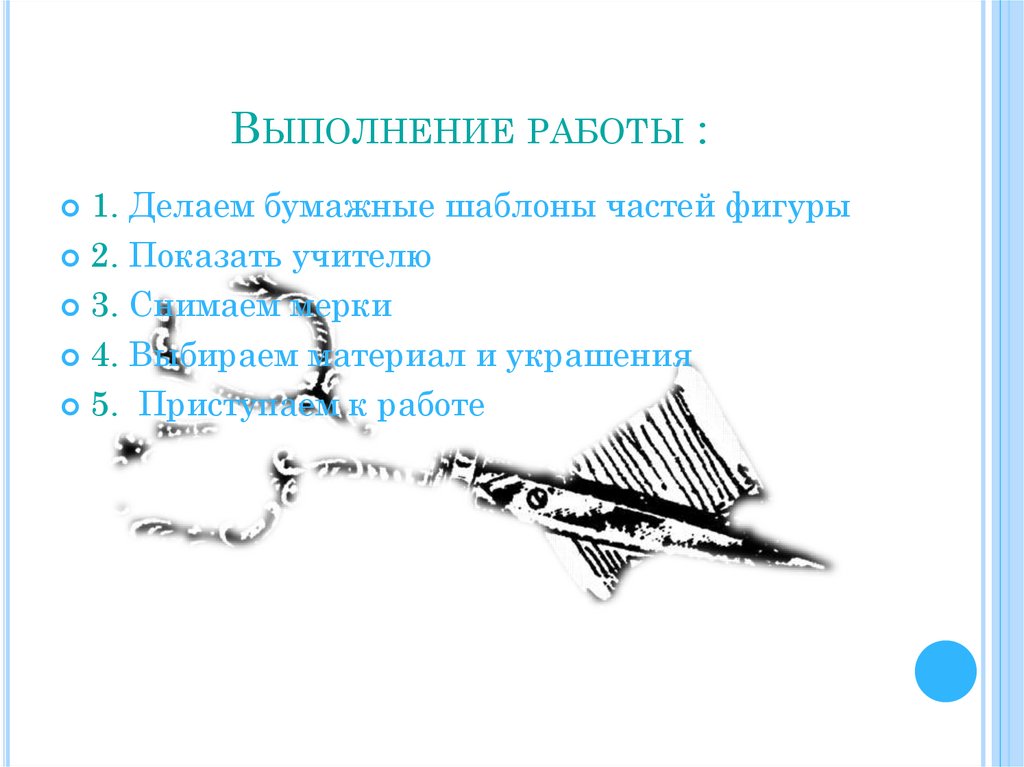 ВЫПОЛНЕНИЕ РАБОТЫ :1. Делаем бумажные шаблоны частей фигуры
