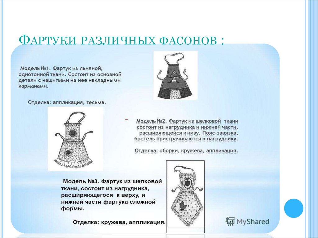 ФАРТУКИ РАЗЛИЧНЫХ ФАСОНОВ :9.