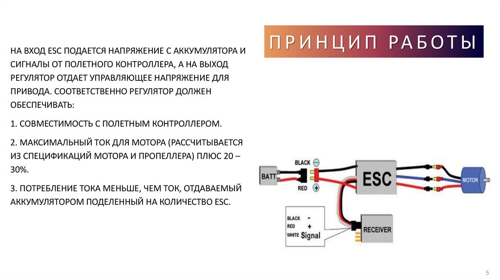 НА ВХОД ESC ПОДАЕТСЯ НАПРЯЖЕНИЕ С АККУМУЛЯТОРА ИСИГНАЛЫ ОТ ПОЛЕТНОГО КОНТРОЛЛЕРА, А НА ВЫХОД