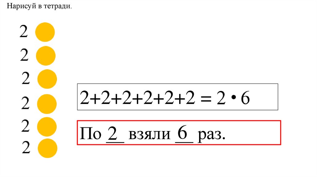 Нарисуй в тетради.2+2+2+2+2+2 =