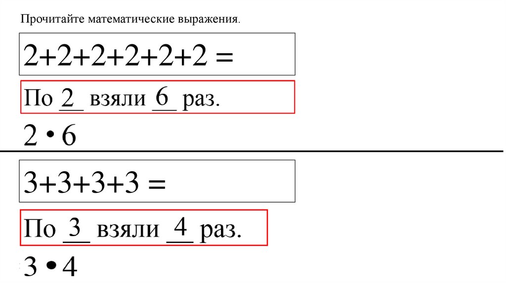 Прочитайте математические выражения.2+2+2+2+2+2 =