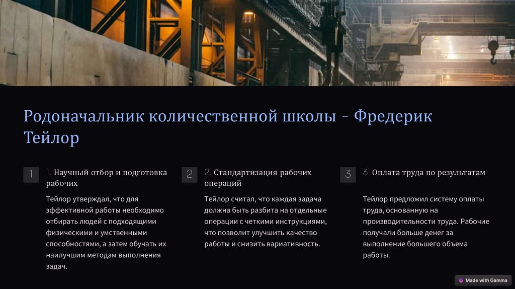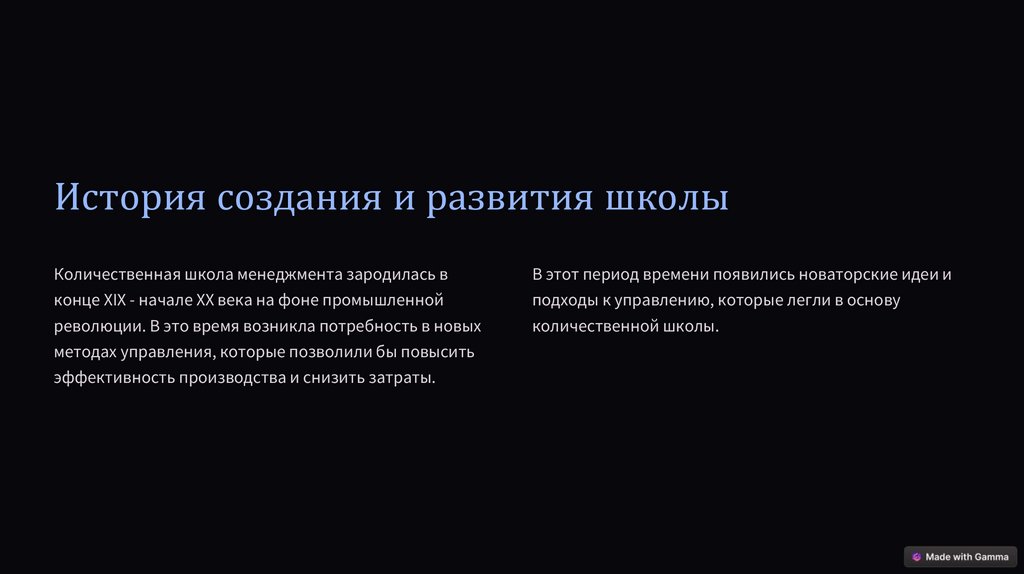 История создания и развития школыКоличественная школа менеджмента зародилась в
