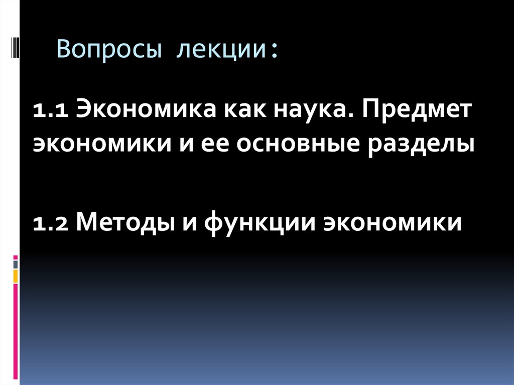 Вопросы лекции:1.1 Экономика как наука. Предмет